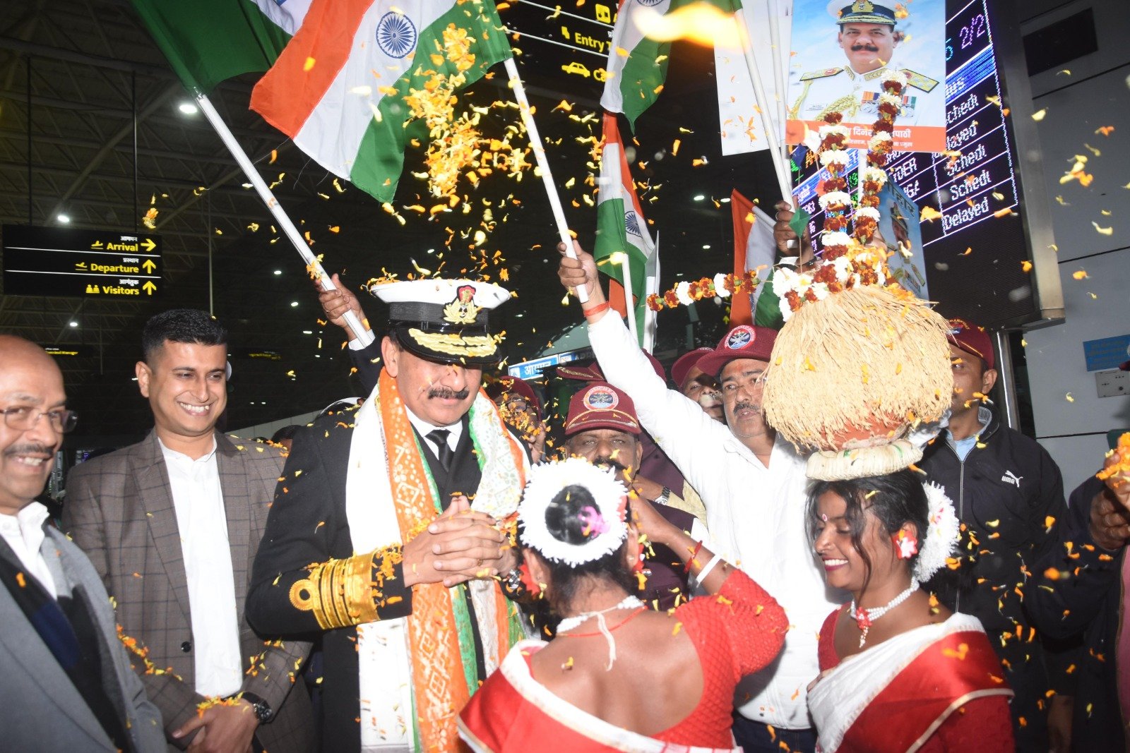 भारतीय नौसेना चीफ पहुंचे रांची, एयरपोर्ट पर भव्य स्वागत