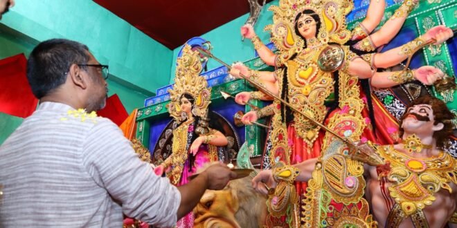 रांची ; नवरात्रि पर्व के पावन अवसर पर मुख्यमंत्री हेमंत सोरेन ने श्री श्री बांधगाड़ी दुर्गा पूजा पंडाल, दीपाटोली एवं हरिमती मंदिर दुर्गा पूजा समिति, लालपुर के पूजा पंडाल का विधिवत अनावरण किया। पट खुलने के बाद उन्होंने मां दुर्गा के दरबार में शीश नवाकर आशीर्वाद प्राप्त किया। इस अवसर पर मुख्यमंत्री ने माता रानी से राज्य की उन्नति, राज्यवासियों के सुख, समृद्धि, स्वास्थ्य और खुशहाल जीवन की कामना की। उन्होंने सभी को दुर्गा पूजोत्सव की बधाई और शुभकामनाएं दी। दोनों पूजा पंडालों में भक्तिमय वातावरण में मां दुर्गा के जयकारे गूँजे मुख्यमंत्री ने कहा कि इस बार दुर्गा पूजा के दौरान हो रही लगातार बारिश के बाद भी श्रद्धा और आस्था का सैलाब उमड़ रहा है। पूजा पंडालों में मां दुर्गा के दर्शन के लिए श्रद्धालुओं का तांता लग रहा है। हर वर्ष की भांति इस बार भी यहां के भव्य और आकर्षक पंडाल दुर्गोत्सव की शोभा बढ़ा रहे हैं । वर्षों से चली आ रही यह परंपरा हर साल और आगे बढ़े, माता रानी से यही कामना करते हैं। इससे पहले मुख्यमंत्री का पूजा पंडाल में आगमन पर पूजा समिति की ओर से स्वागत और अभिनन्दन किया गया।