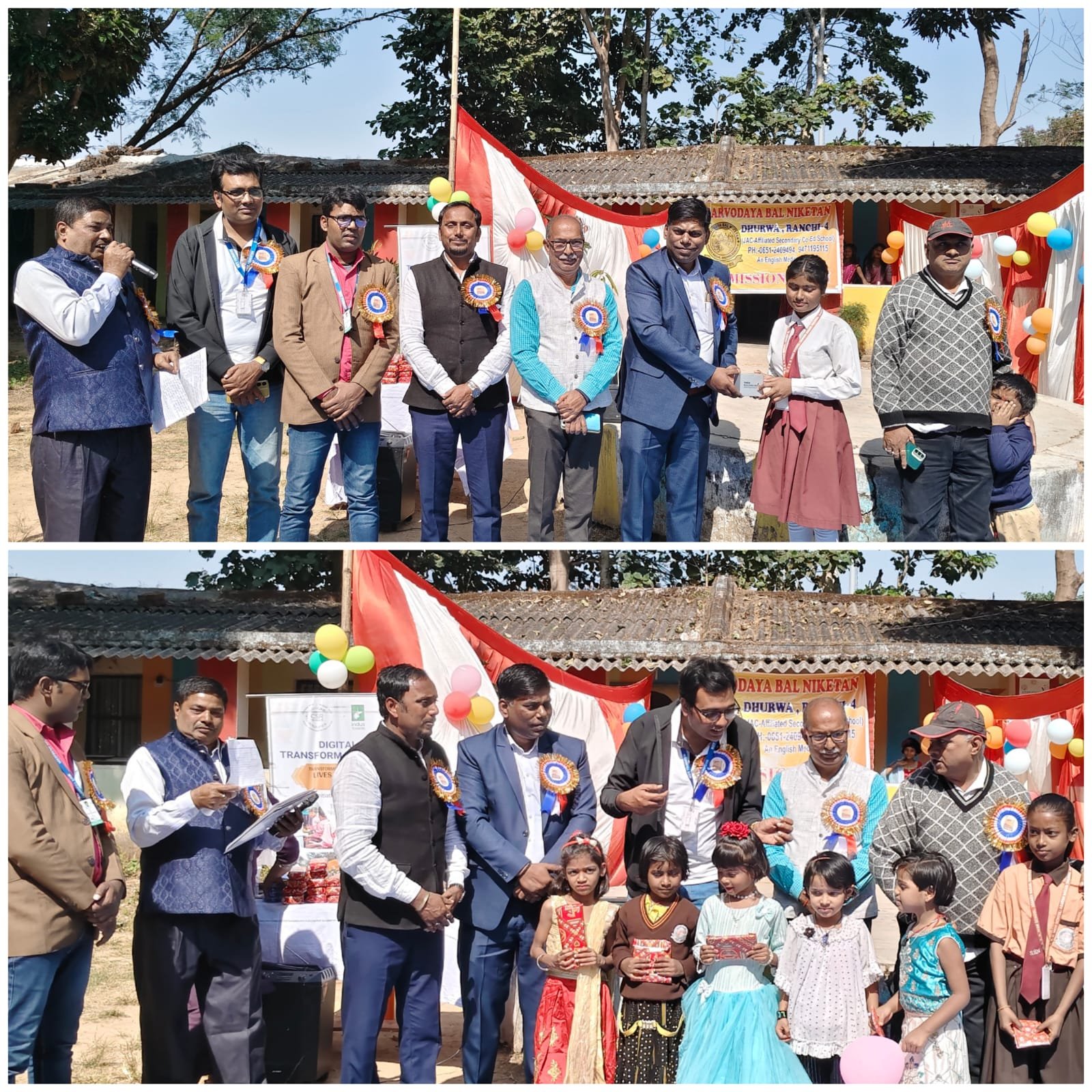 रांची। बाल दिवस के अवसर पर सर्वोदय बाल निकेतन, आदर्श नगर धुर्वा में विशेष कार्यक्रम का आयोजन किया गया। इस मौके पर विद्यालय के बच्चों ने रंगारंग और मनोहारी सांस्कृतिक प्रस्तुतियों से उपस्थित अतिथियों और दर्शकों का मन मोह लिया। कार्यक्रम में लायंस क्लब के रामकृष्ण, झारखंड स्वतंत्रता सेनानी संघ के प्रवीर नाथ शाहदेव, NIIT फाउंडेशन के प्रशांत , स्थानीय पार्षद दीपक कुमार लोहरा, कुणाल शाहदेव, तथा टाटा बिल्डिंग के सुमित सिन्हा सहित कई विशिष्ट अतिथि उपस्थित रहे। सभी अतिथियों ने बच्चों के उत्साह, प्रतिभा और प्रस्तुतियों की सराहना की।