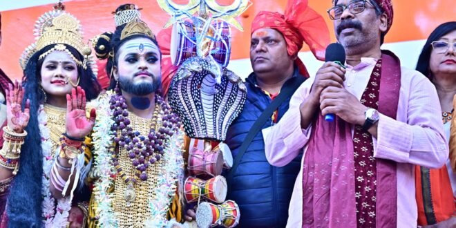 रांची। महाशिवरात्रि के पावन अवसर पर पहाड़ी मंदिर परिसर में श्री शिव बारात आयोजन महासमिति की ओर से भव्य महाशिवरात्रि महोत्सव का आयोजन किया गया। कार्यक्रम में राज्य के मुख्यमंत्री हेमंत सोरेन शामिल हुए और बाबा भोलेनाथ की पारंपरिक विधि-विधान से पूजा-अर्चना कर राज्य की प्रगति, सुख-समृद्धि, शांति एवं खुशहाली की कामना की।