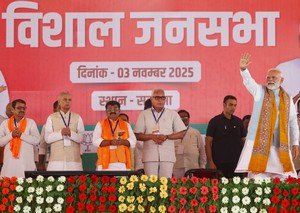 SAHARSA, NOV 3 (UNI):- Prime Minister Narendra Modi at an election rally in support of NDA candidates ahead of Bihar Assembly elections, in Saharsa, Bihar on Monday. UNI PHOTO-158U